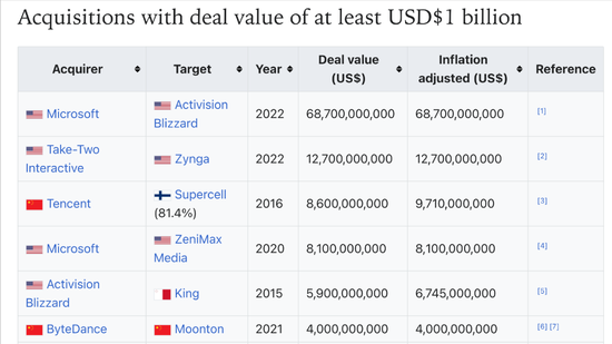 而没有游戏基因、行业根基浅薄的字节跳动,就只能靠给出更高的溢价从腾讯嘴里抢肉。为了从腾讯手中抢来沐瞳科技,2021年字节跳动不惜开出了40亿美元高价,成为游戏收购史上排名第六的案例。
